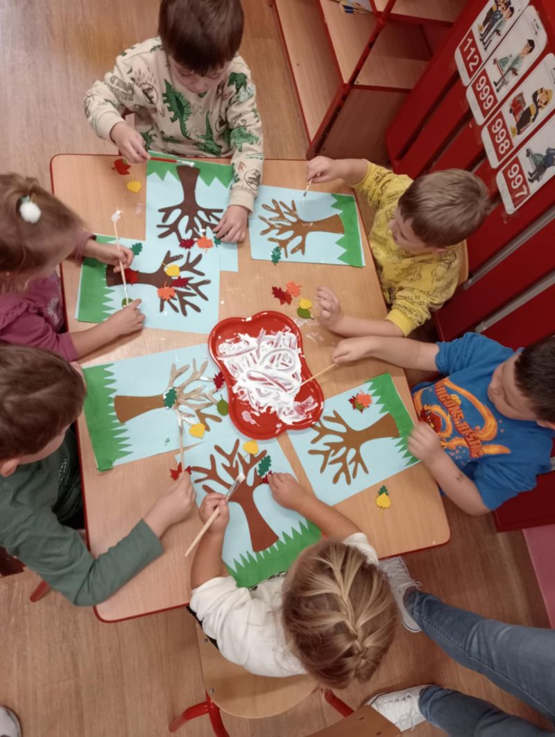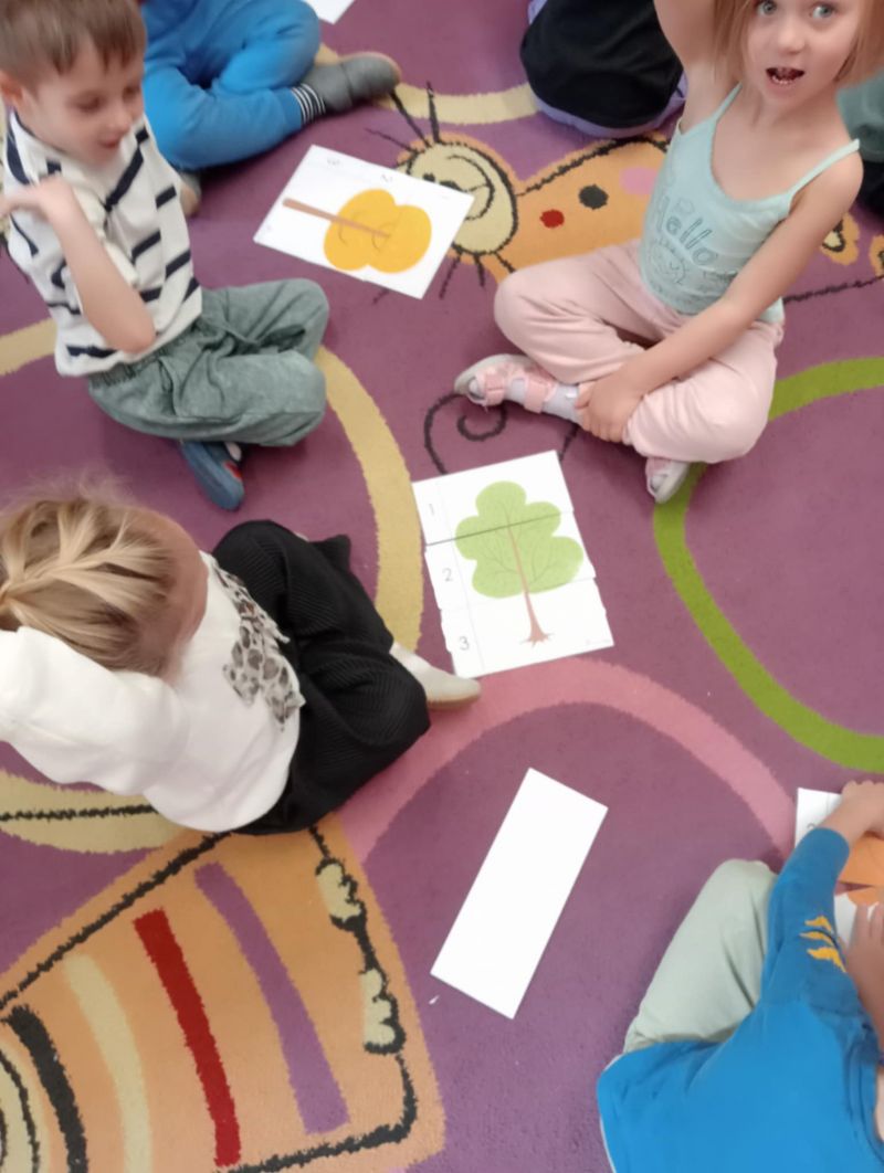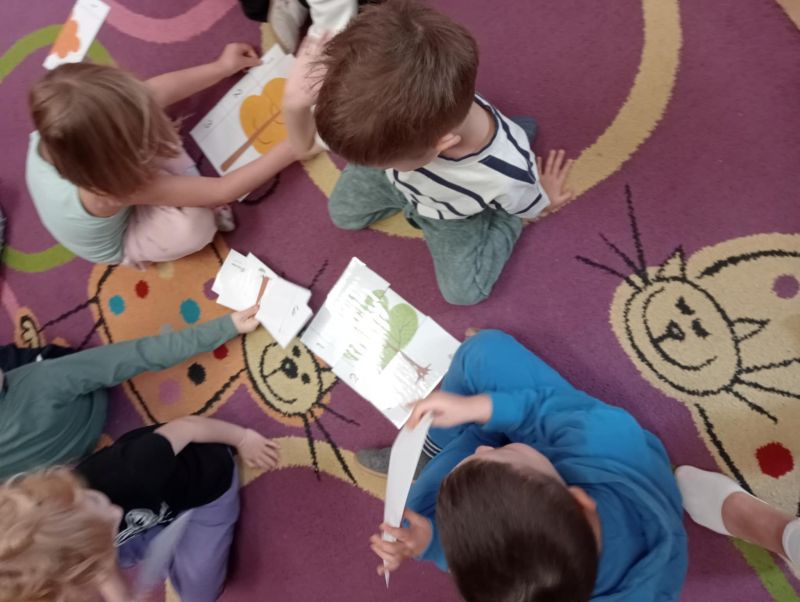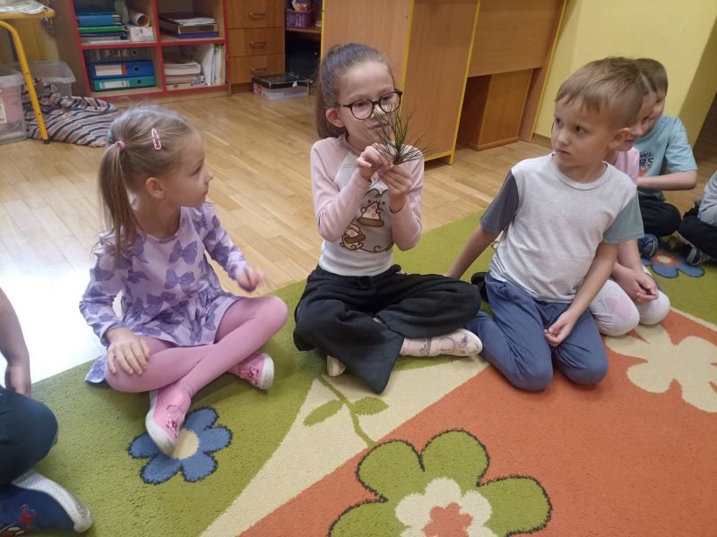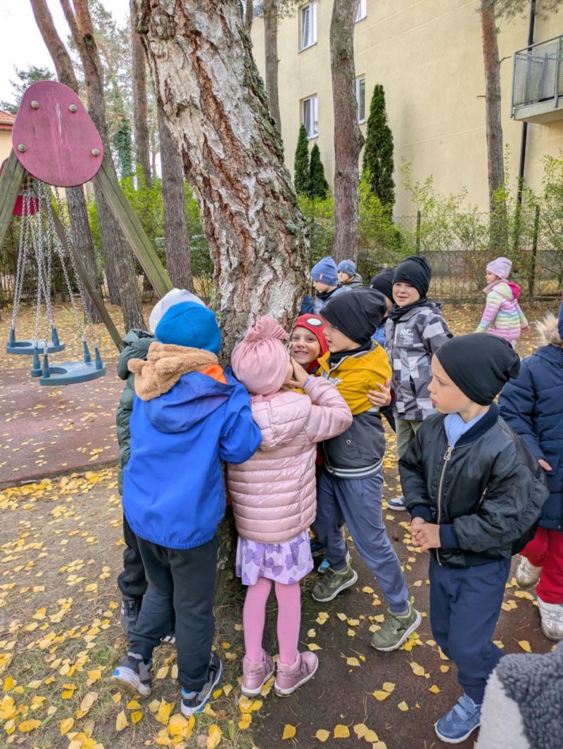 Rozmawialiśmy o tym, dlaczego drzewa są takie ważne — dowiedzieliśmy się, że dają nam tlen,owoce, orzechy ,są materiałem do wytwarzania papieru,a także są schronieniem dla zwierząt, a latem dają miły cień. Dzieci z wielkim zainteresowaniem słuchały, zadawał pytania i chętnie dzieliły się swoimi spostrzeżeniami