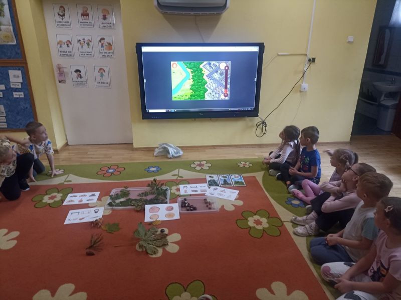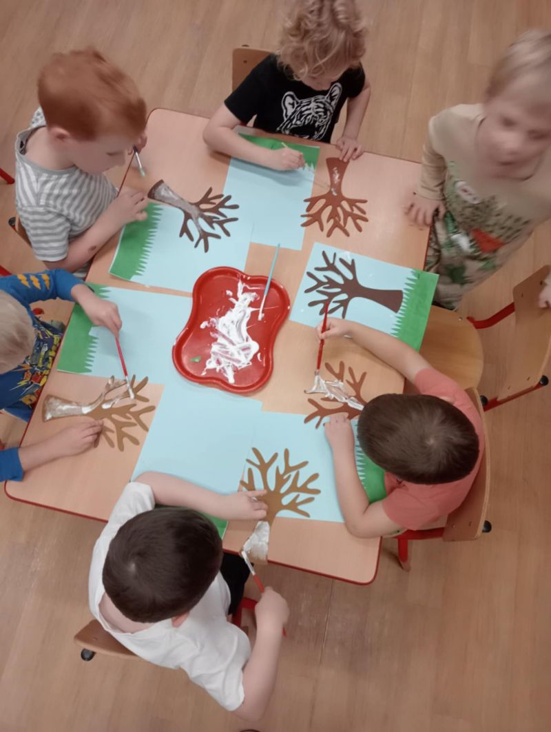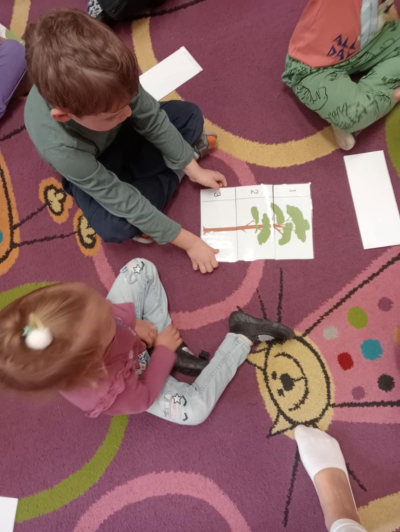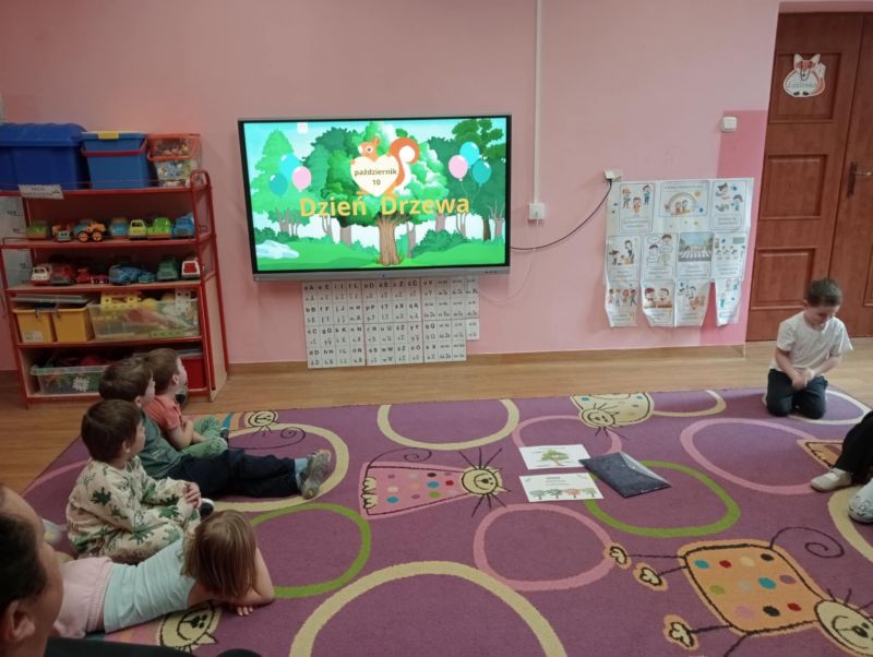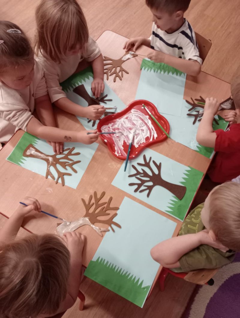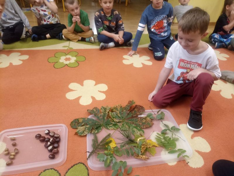 Rozmawialiśmy o tym, dlaczego drzewa są takie ważne — dowiedzieliśmy się, że dają nam tlen,owoce, orzechy ,są materiałem do wytwarzania papieru,a także są schronieniem dla zwierząt, a latem dają miły cień. Dzieci z wielkim zainteresowaniem słuchały, zadawał pytania i chętnie dzieliły się swoimi spostrzeżeniami