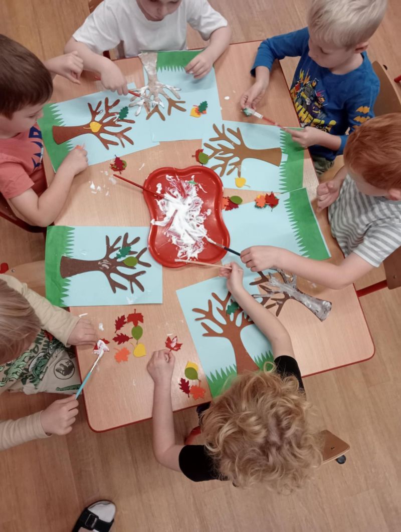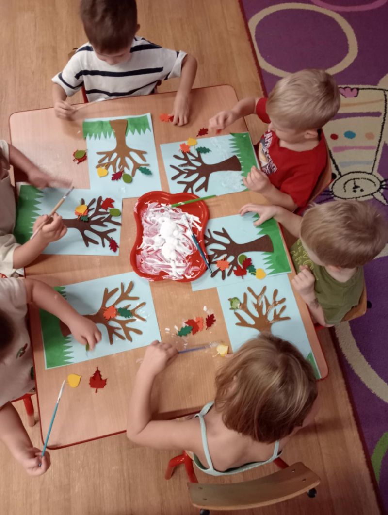 Podczas zajęć Krasnoludki i Motylki wykonały piękne prace plastyczne przedstawiające jesienne drzewa i, a na spacerze przytulały prawdziwe drzewa, słuchając ich „szeptu” i podziwiając kolorowe liście.