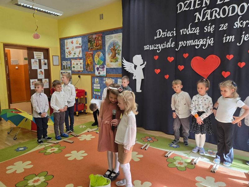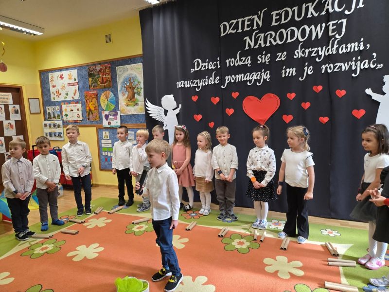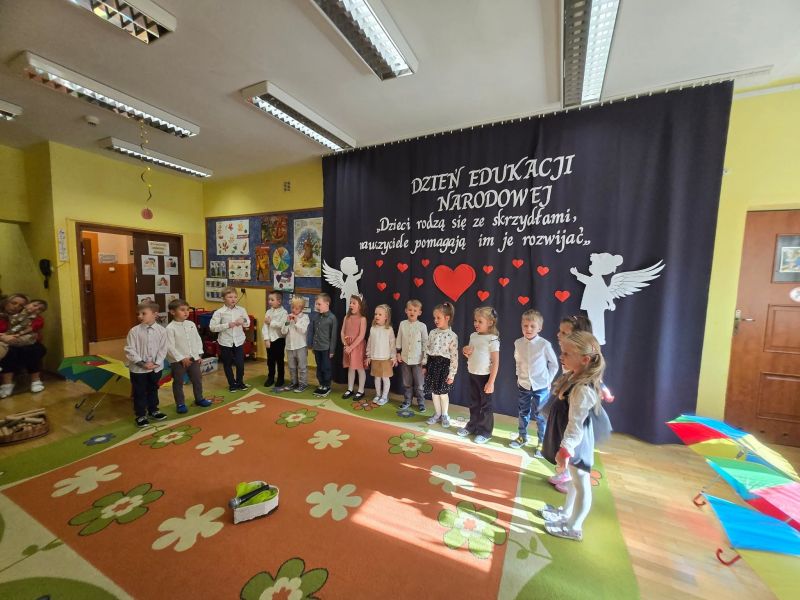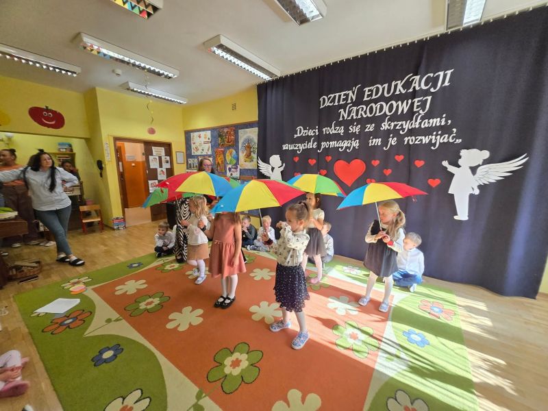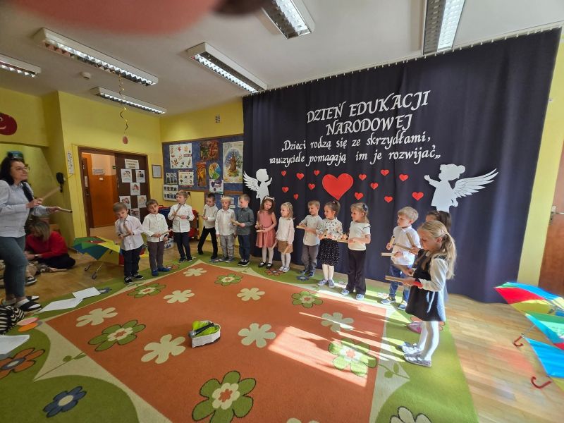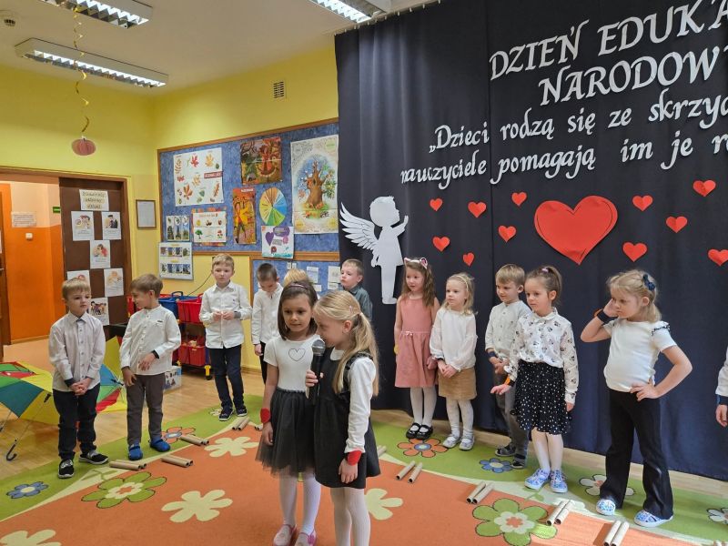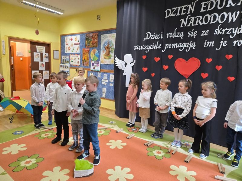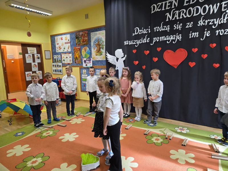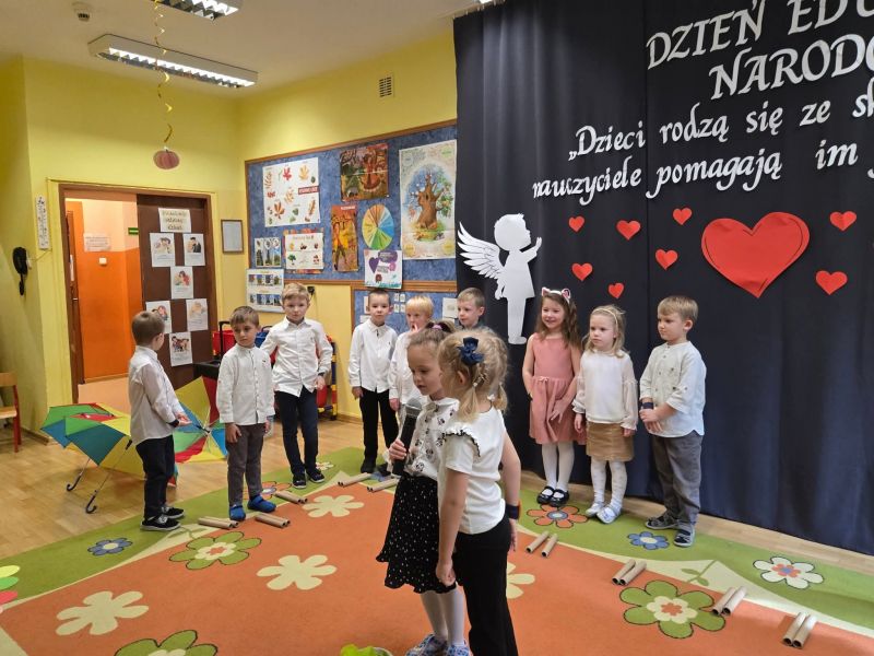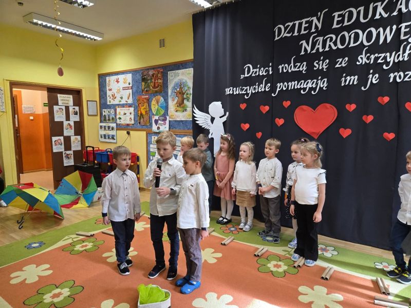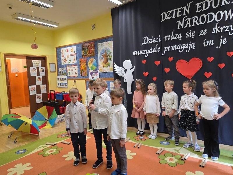 Dzień Edukacji Narodowej to wyjątkowy dzień dla wszystkich pracowników oświaty. Nasze przedszkolaki również chciały podziękować w tym dniu, swoim ukochanym paniom i pracownikom przedszkola za uśmiech, życzliwość i trud włożony w ich wychowanie, za opiekę, dobre rady, czyste sale oraz smaczne posiłki.