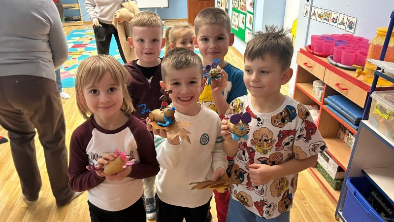 Były zabawy ruchowe, konkurencje sportowe z ziemniakiem, na zwierzaki-cudaki, ziemniaczane stworki.