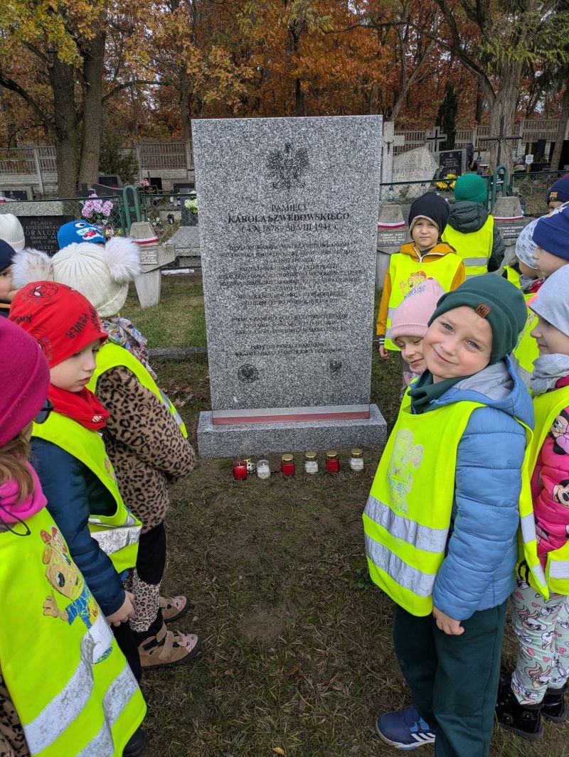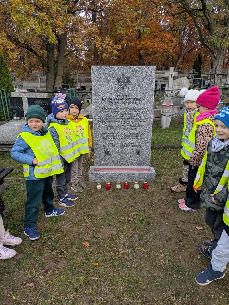 Przedszkolaki nie zapomniały o grobie Karola Szwedowskiego, którym nasza placówka się opiekuje. Zapalone znicze i chwila ciszy pozwoliły okazać szacunek, cześć i pamięć tym, którzy walczyli za naszą wolność.