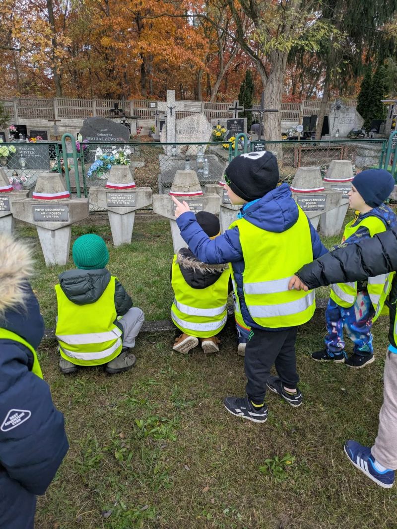 W grupie Krasnoludków nadchodzący dzień Wszystkich Świętych był okazją do rozmów o historii naszego kraju oraz powodem wyjścia na pobliski Cmentarz aby oddać hołd poległym żołnierzom.