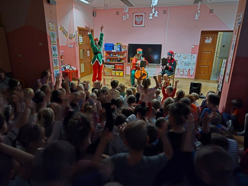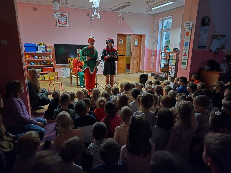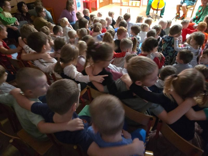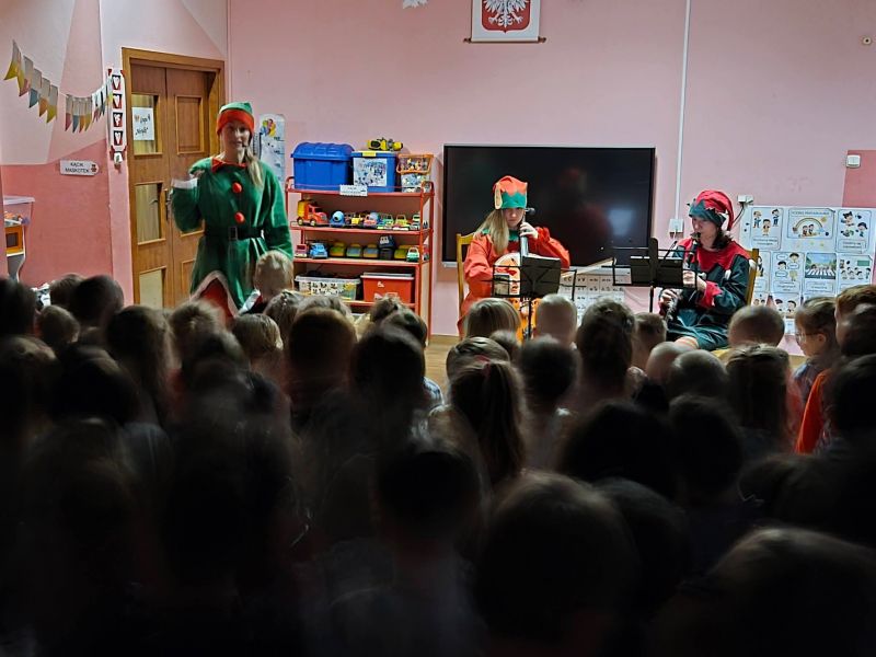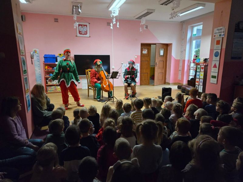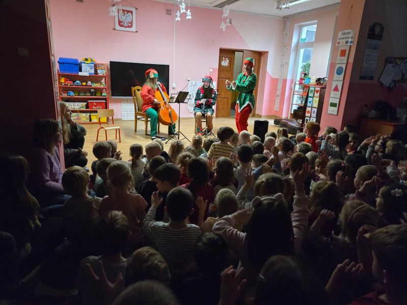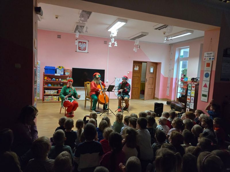 Pierwszego grudnia świąteczny koncert Elfów w naszym przedszkolu, troszkę opowieści, zapoznanie z tradycją zbilżających sìę świąt przy akompaniamencie klarnetu i wiolonczeli.