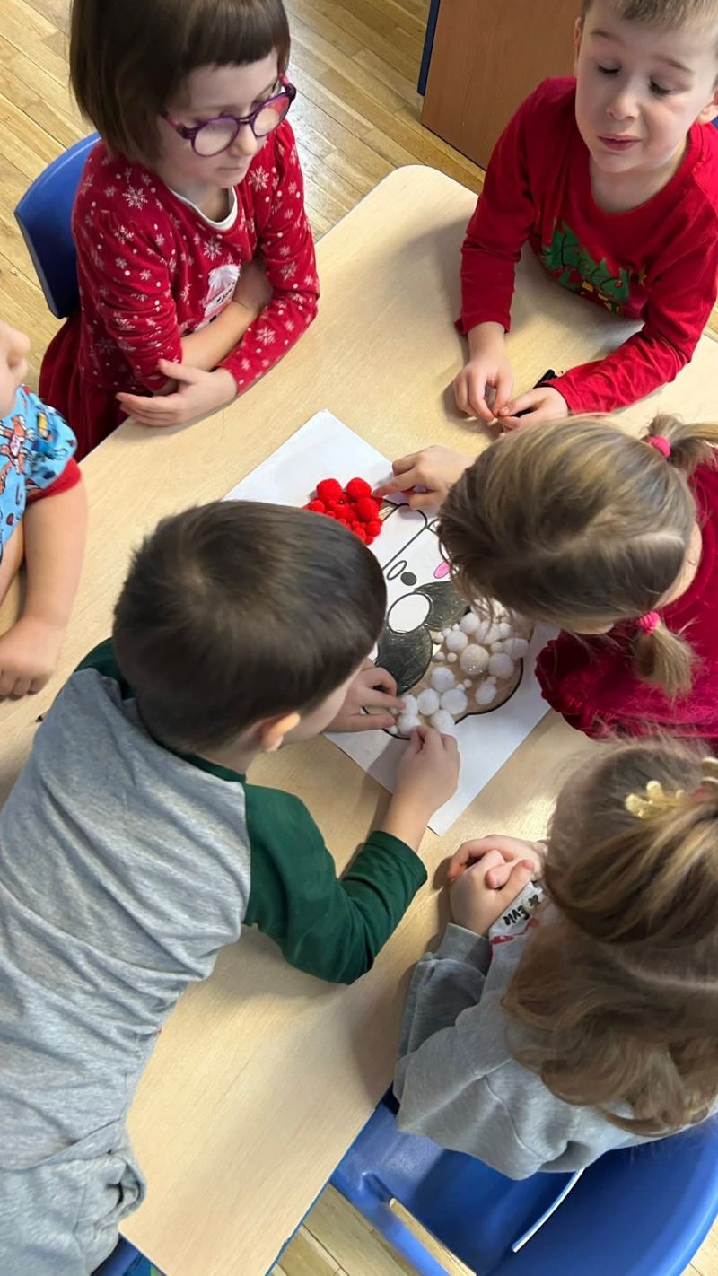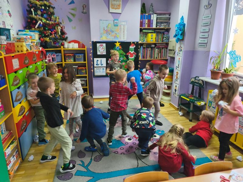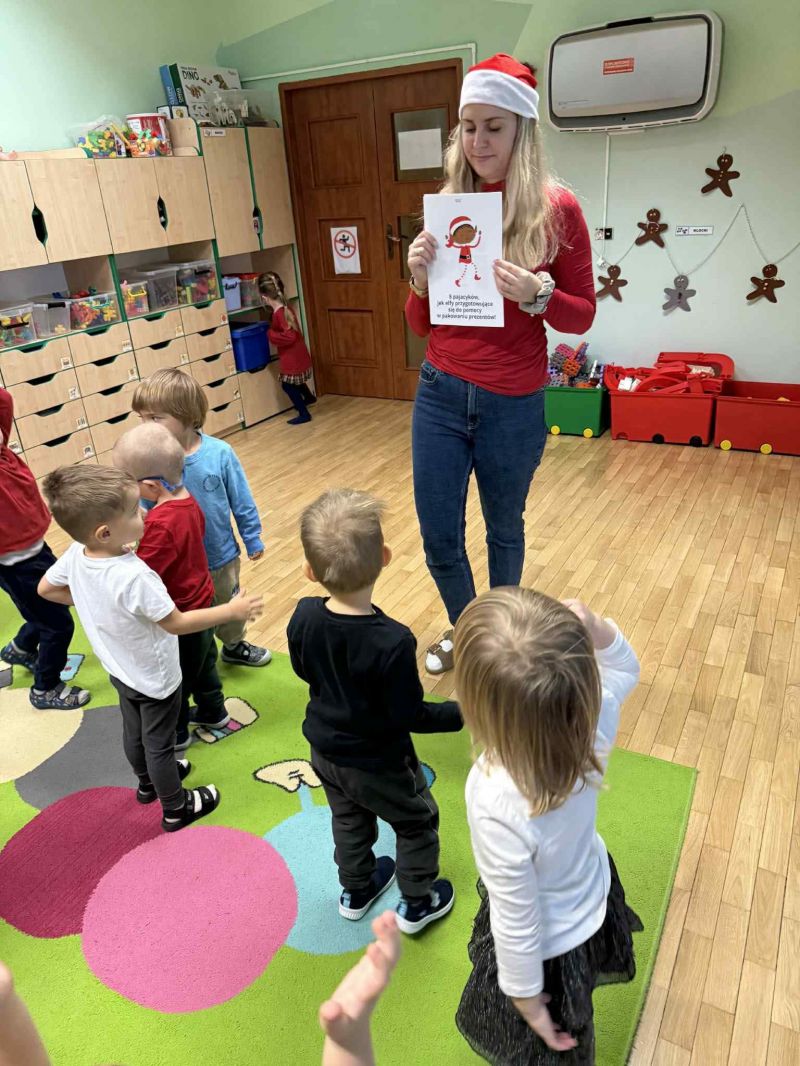 Wspólnie bawiliśmy się przy świątecznych piosenkach, braliśmy udział w zabawach ruchowych i plastycznych oraz rozmawialiśmy o tradycjach mikołajkowych.