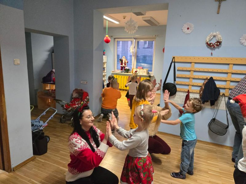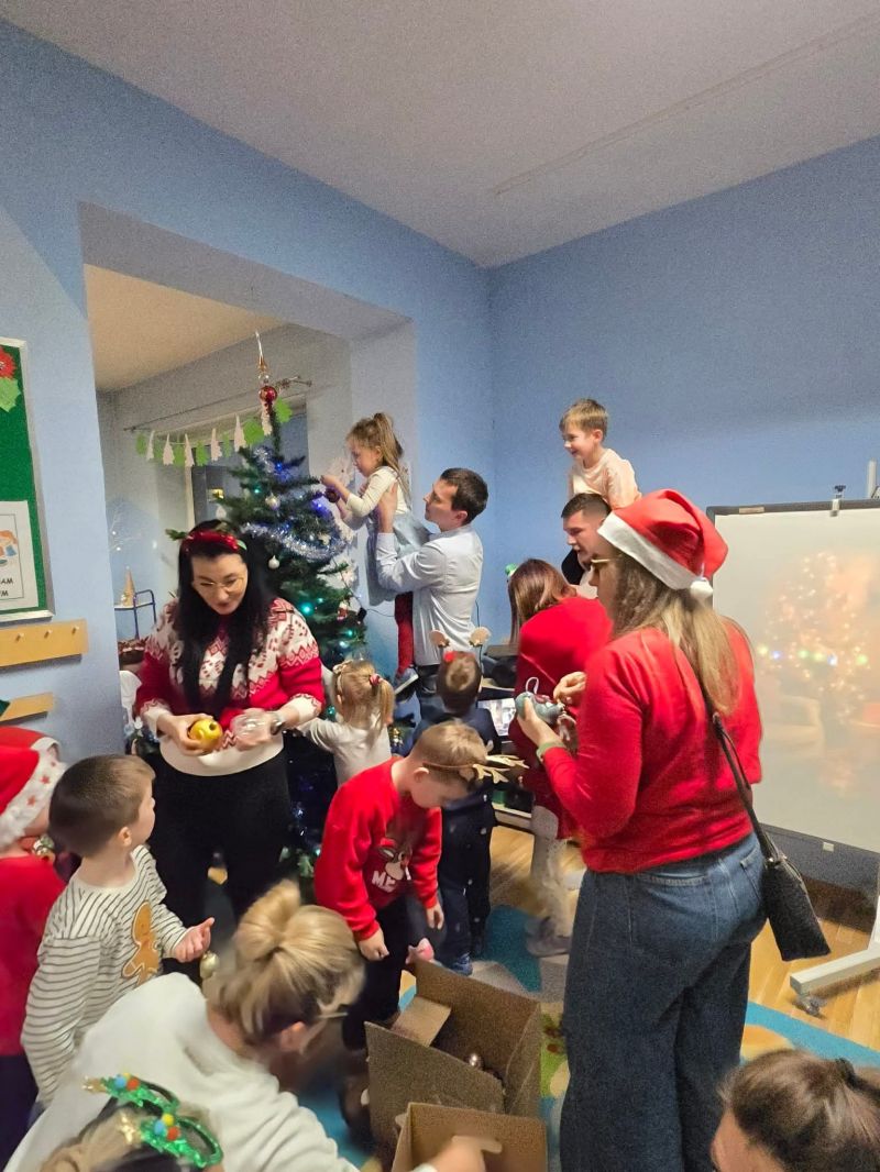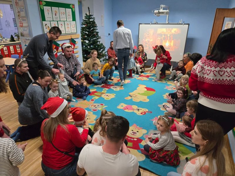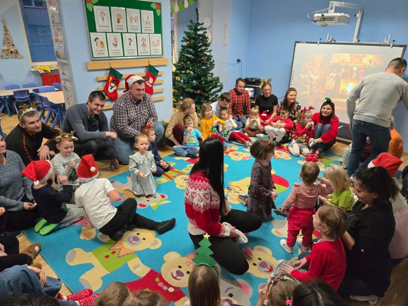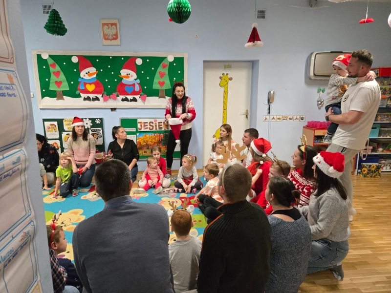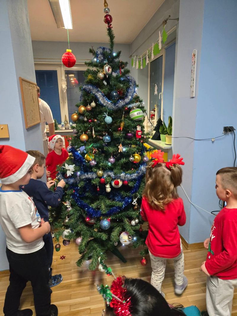 Wspólnie z dziećmi i rodzicami ubraliśmy choinkę, tworząc prawdziwie magiczną, bożonarodzeniową atmosferę w sali „myszek". Było mnóstwo uśmiechów, kreatywnej zabawy, kolorowych ozdób i świątecznego nastroju, który na długo zostanie w naszych sercach.