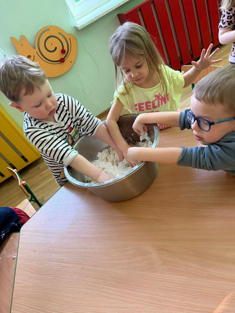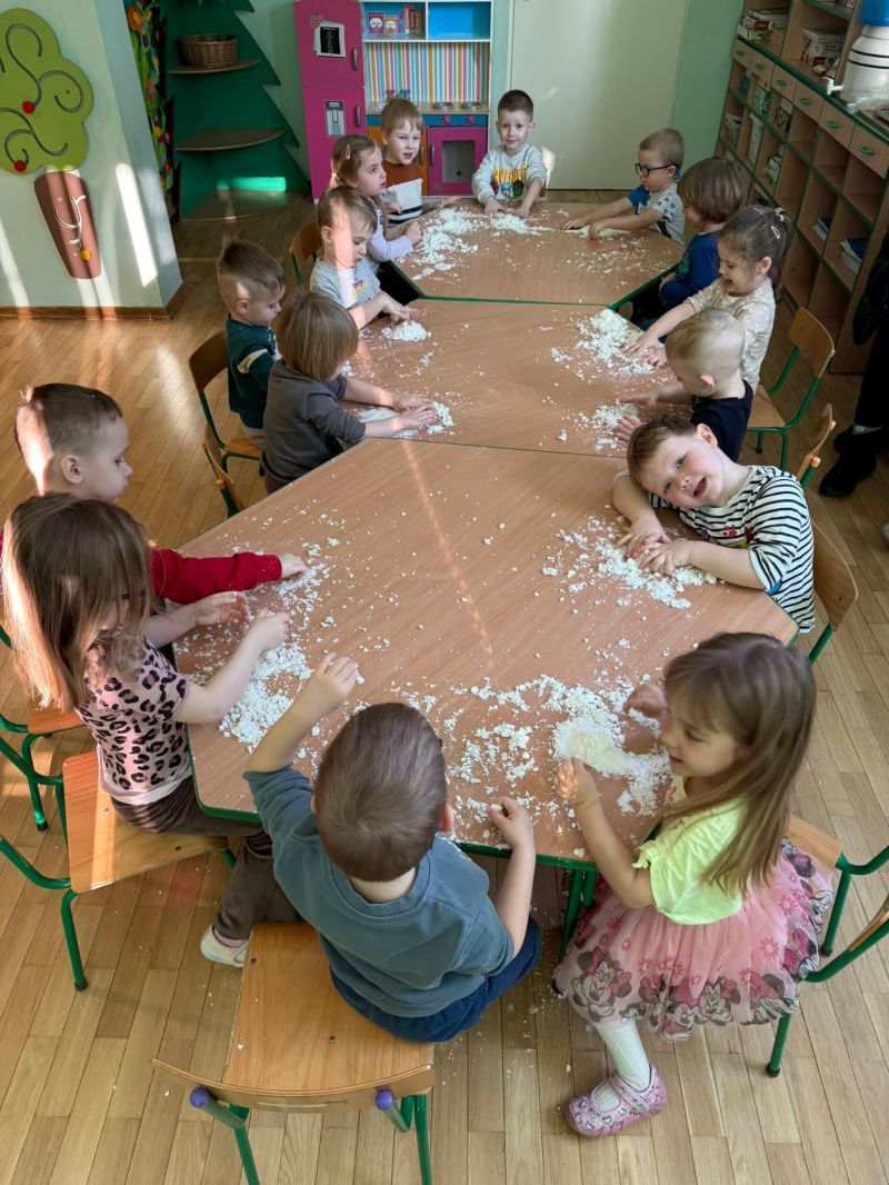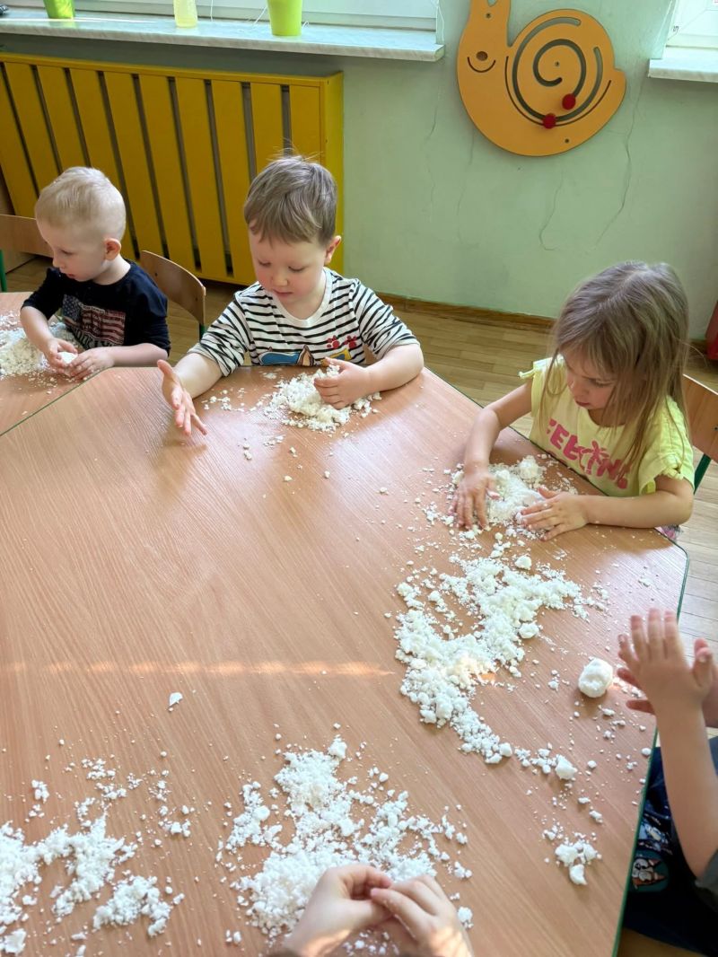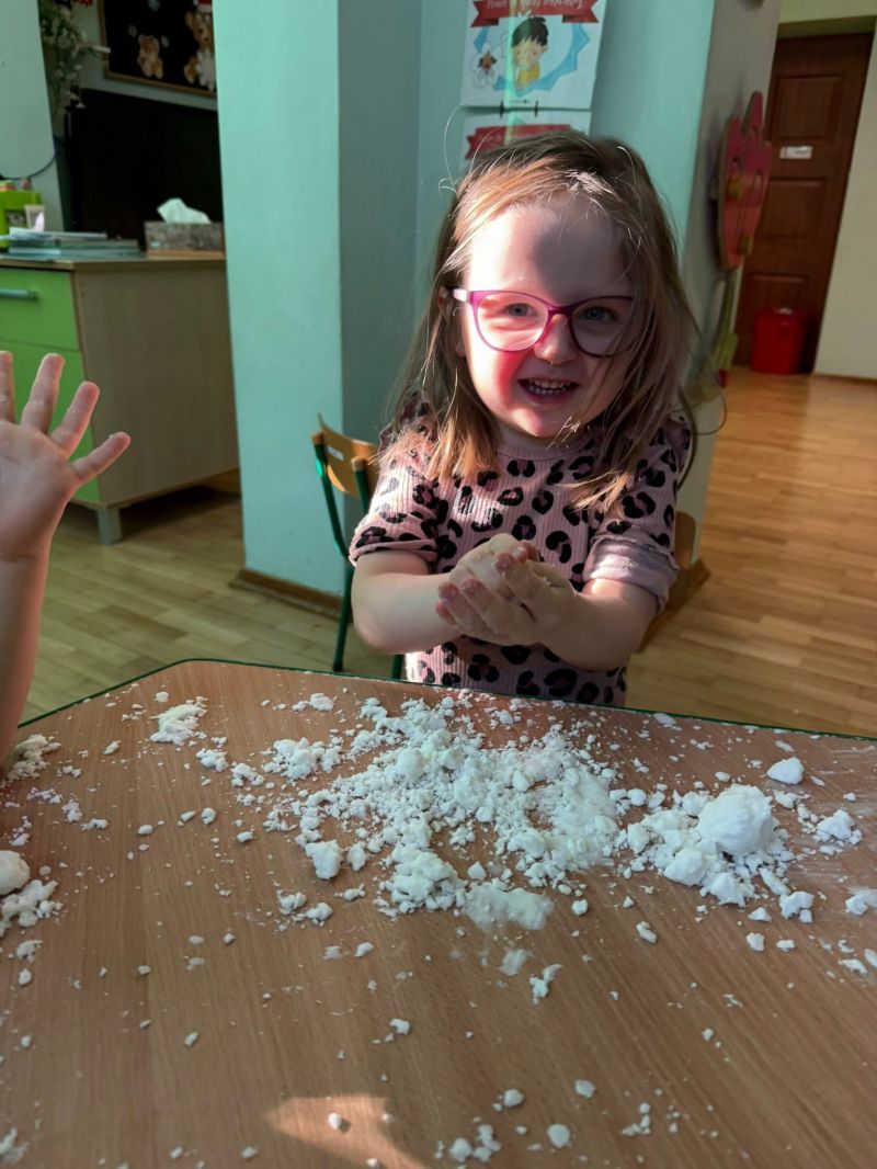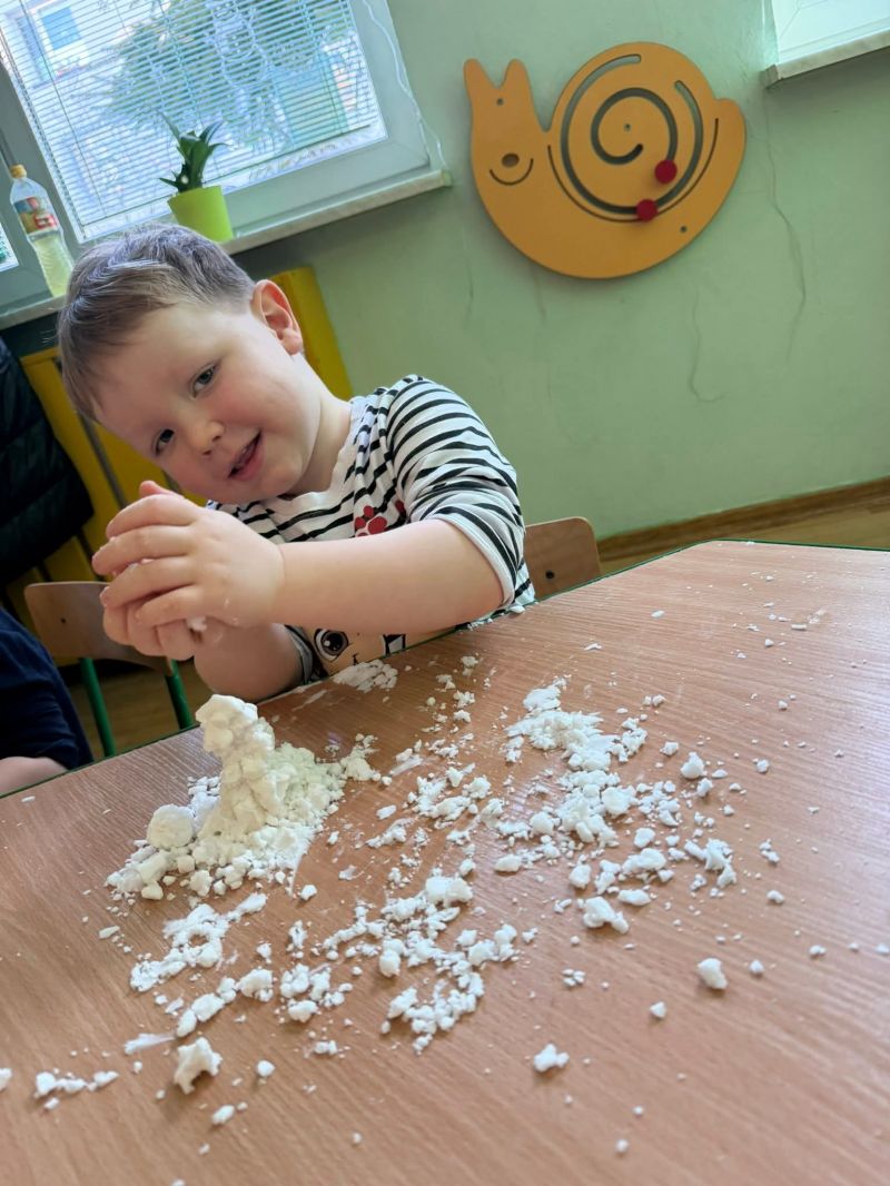 Dziś w naszej sali zrobiło się prawdziwie zimowo! Maluchy świętowały Dzień Bałwana, tworząc własny sztuczny śnieg, a potem z wielkim zaangażowaniem dotykały, ugniatały, przesypywały i próbowały ulepić swoje bałwanki