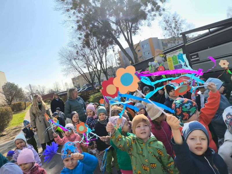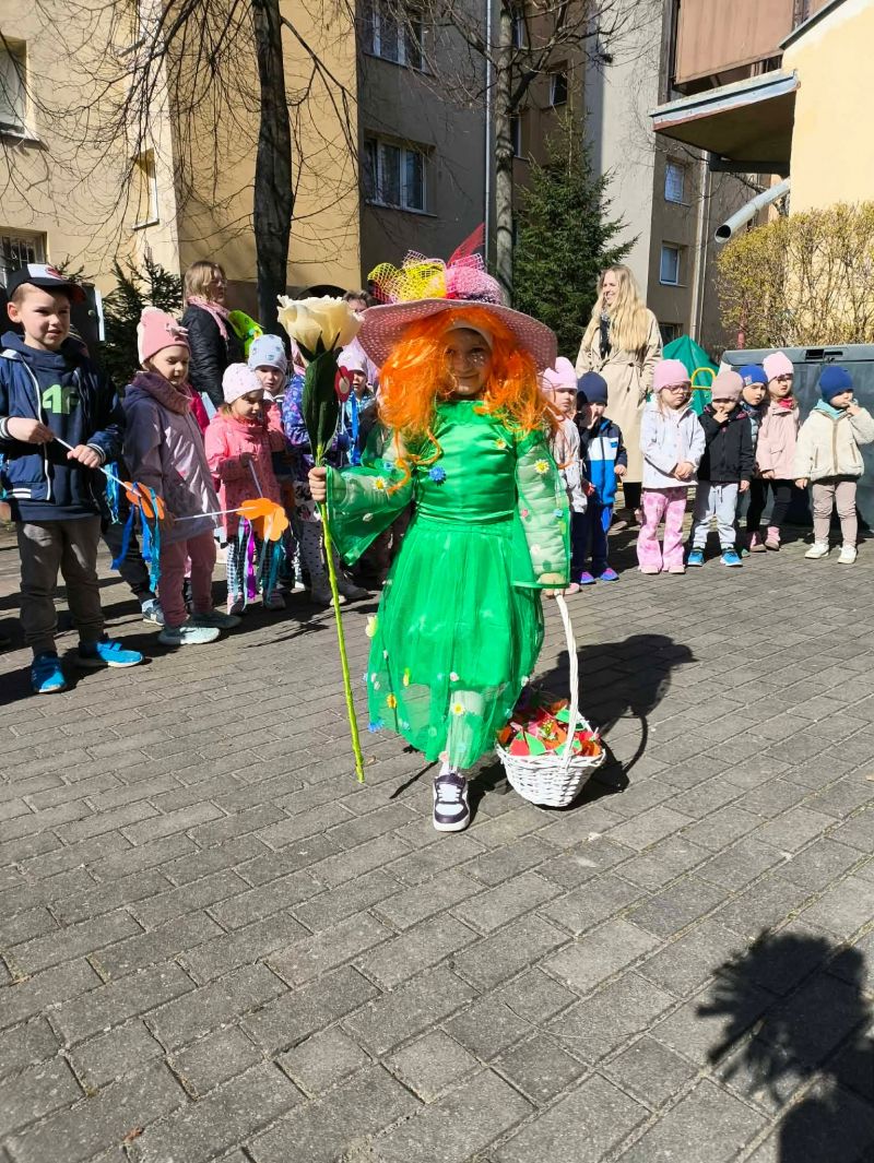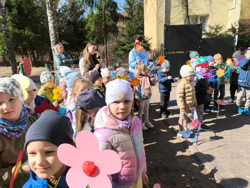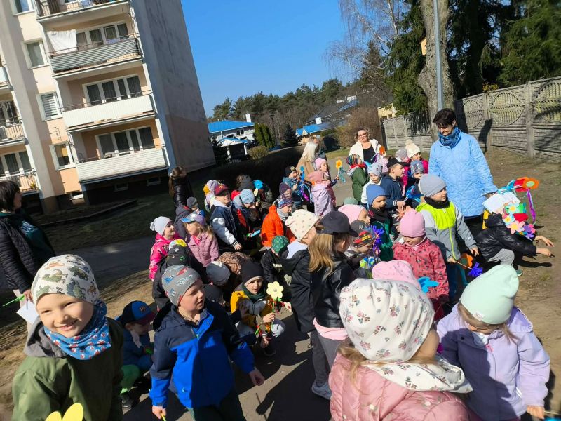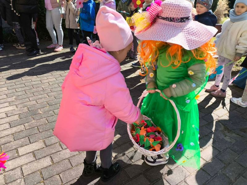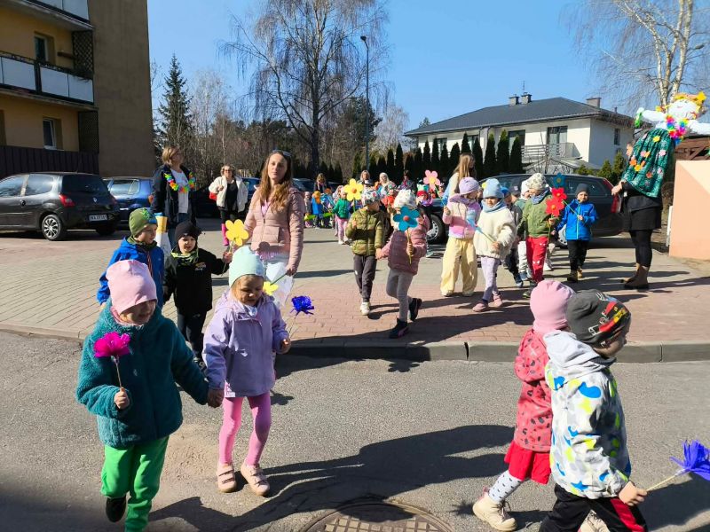 W poniedziałek dzieci z naszego przedszkola pożegnały Zimową Pannę Marzannę, a powitały małą piękną Wiosnę. To doskonała okazja, aby wspólnie świętować nadejście tej pięknej pory roku. Największą atrakcją dla przedszkolaków był wiosenny przemarsz po najbliższej okolicy. Wszystkie dzieci wyruszyły barwnym korowodem, trzymając w rękach wiosenne symbole. Podczas przemarszu bacznie obserwowały piękno budzącej się do życia przyrody, wypatrywały pączków na drzewach, pierwszych kwiatów. Były tańce, śpiew, zabawy. Przedszkolaki chętnie rozwiązywały 12 wiosennych zagadek. Przywoływały Wiosnę głośnymi okrzykami i piosenką, a wiosna w nagrodę za super zabawę przygotowała dla dzieci wiosenną niespodziankę-. Ten dzień z pewnością był dla każdego przedszkolaka radosnym i niezapomnianym wydarzeniem.