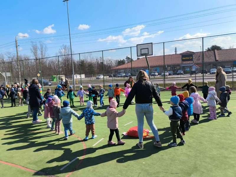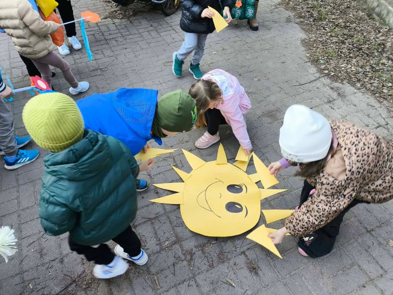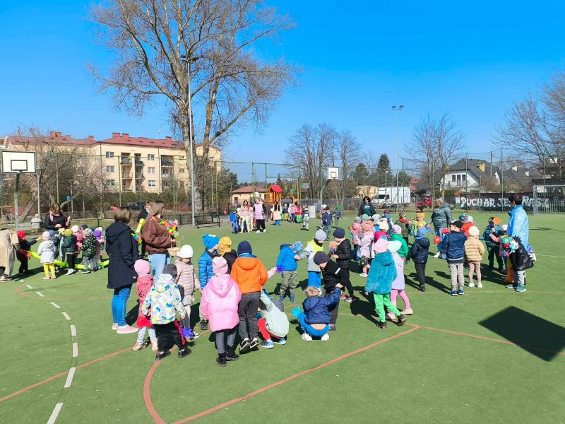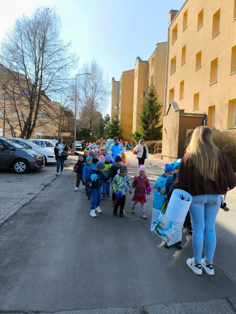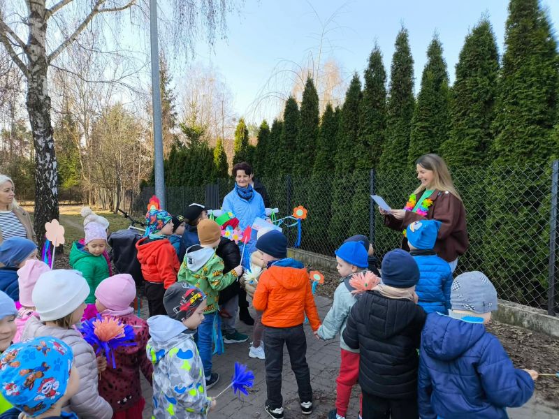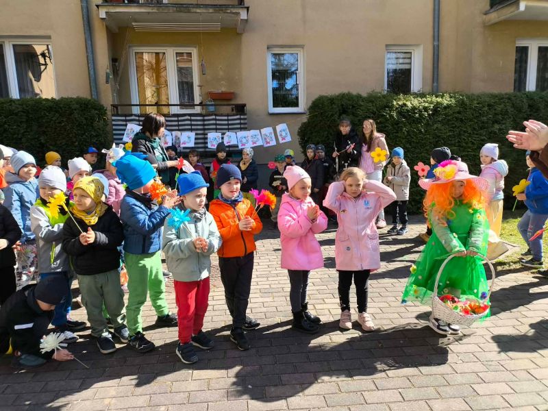 W poniedziałek dzieci z naszego przedszkola pożegnały Zimową Pannę Marzannę, a powitały małą piękną Wiosnę. To doskonała okazja, aby wspólnie świętować nadejście tej pięknej pory roku. Największą atrakcją dla przedszkolaków był wiosenny przemarsz po najbliższej okolicy. Wszystkie dzieci wyruszyły barwnym korowodem, trzymając w rękach wiosenne symbole. Podczas przemarszu bacznie obserwowały piękno budzącej się do życia przyrody, wypatrywały pączków na drzewach, pierwszych kwiatów. Były tańce, śpiew, zabawy. Przedszkolaki chętnie rozwiązywały 12 wiosennych zagadek. Przywoływały Wiosnę głośnymi okrzykami i piosenką, a wiosna w nagrodę za super zabawę przygotowała dla dzieci wiosenną niespodziankę-. Ten dzień z pewnością był dla każdego przedszkolaka radosnym i niezapomnianym wydarzeniem.